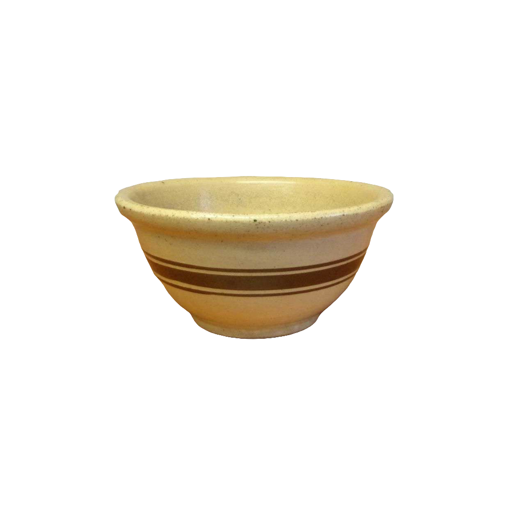 This is a vintage RRP Co stoneware bowl with brown bands. Perfect to add to your collection of yellow ware or crocks. A great way to add a rustic touch to your primitive farmhouse kitchen. If you're anything like me you'll appreciate the way its charm compliments your home. The bottom is marked with RRP Co. Roseville, OHIO 120-5, it is hard to read. RRP Co is the mark for Robinson Ransbottom Pottery Co. of Roseville, Ohio.