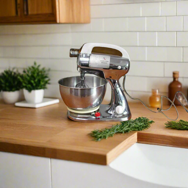 Vintage Hamilton Beach Chrome Stand Mixer with Metal Bowl